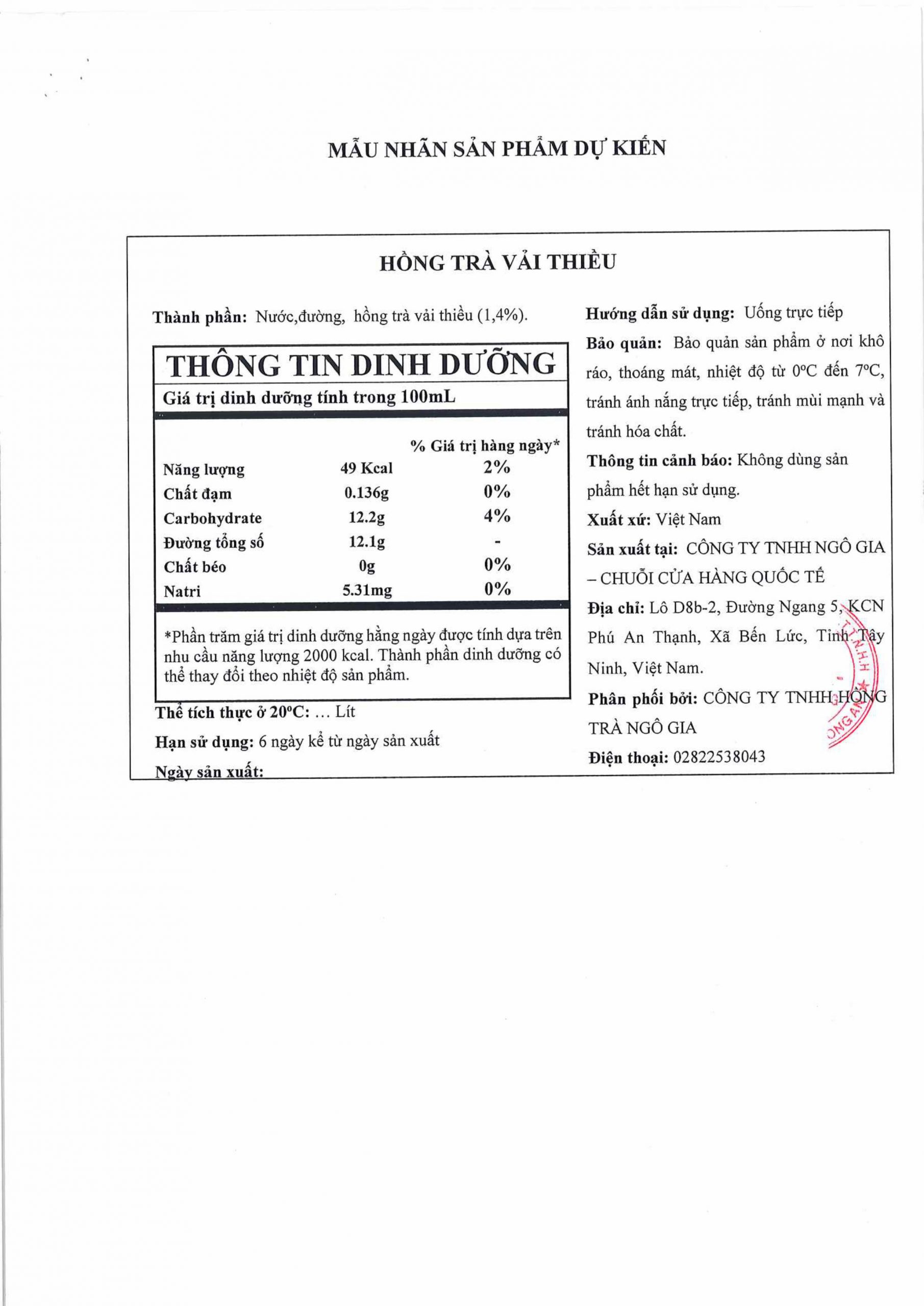 6. Phân phối bởi: CÔNG TY TNHH HỒNG TRÀ NGÔ GIA