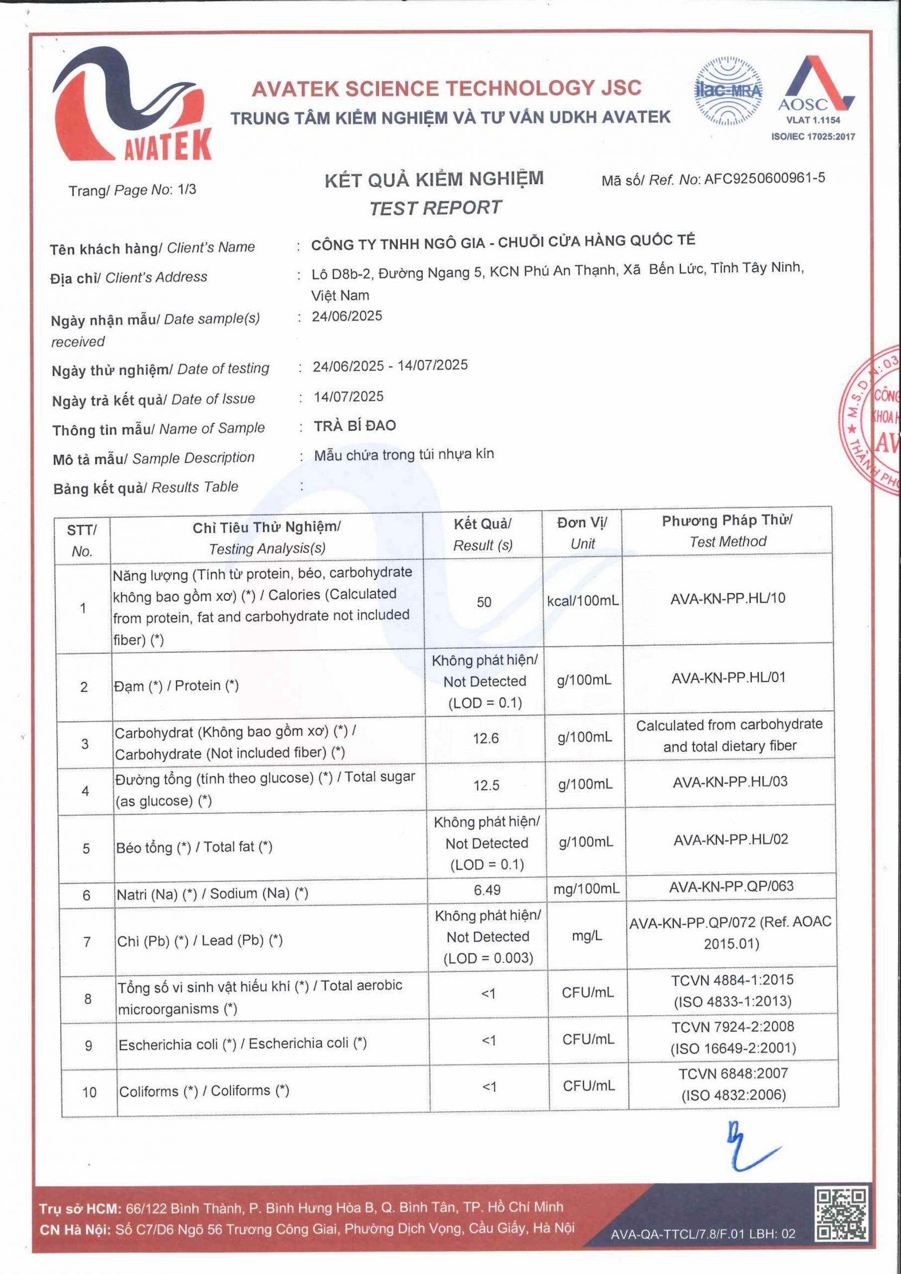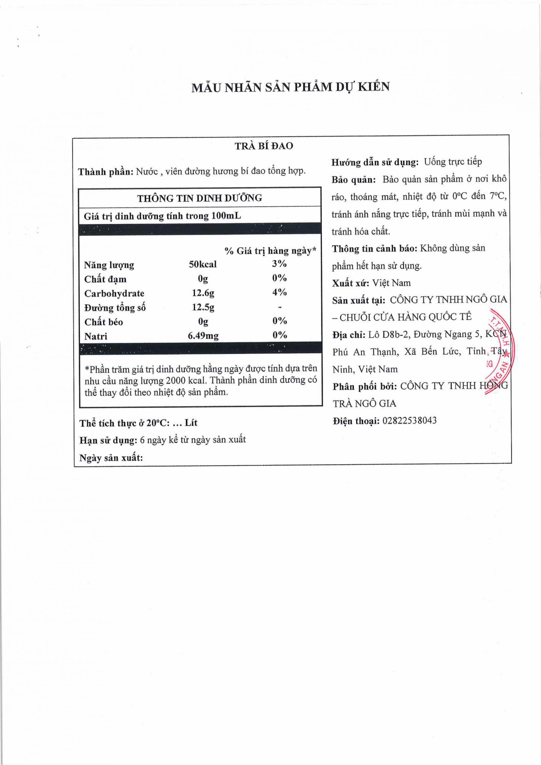 1. Tên sản phẩm: TRÀ BÍ ĐAO