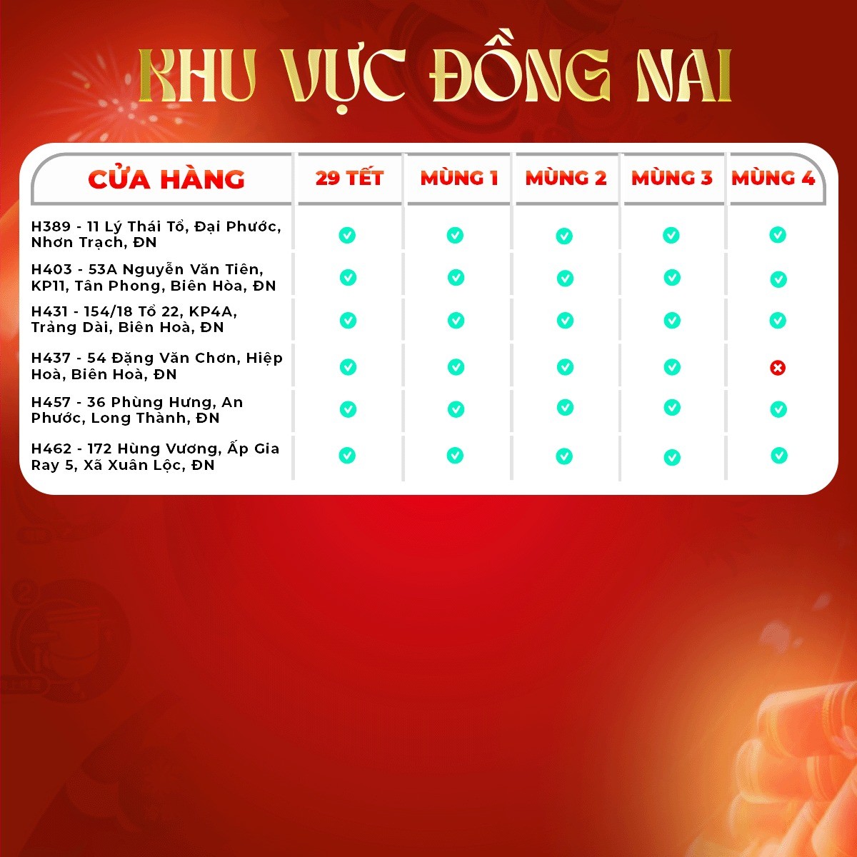Để mọi người yên tâm vui xuân mà vẫn luôn có ly trà quen thuộc bên cạnh, Ngô Gia xin cập nhật danh sách các cửa hàng khu vực Đông Nam Bộ+ hoạt động xuyên suốt Tết Bính Ngọ 2026.